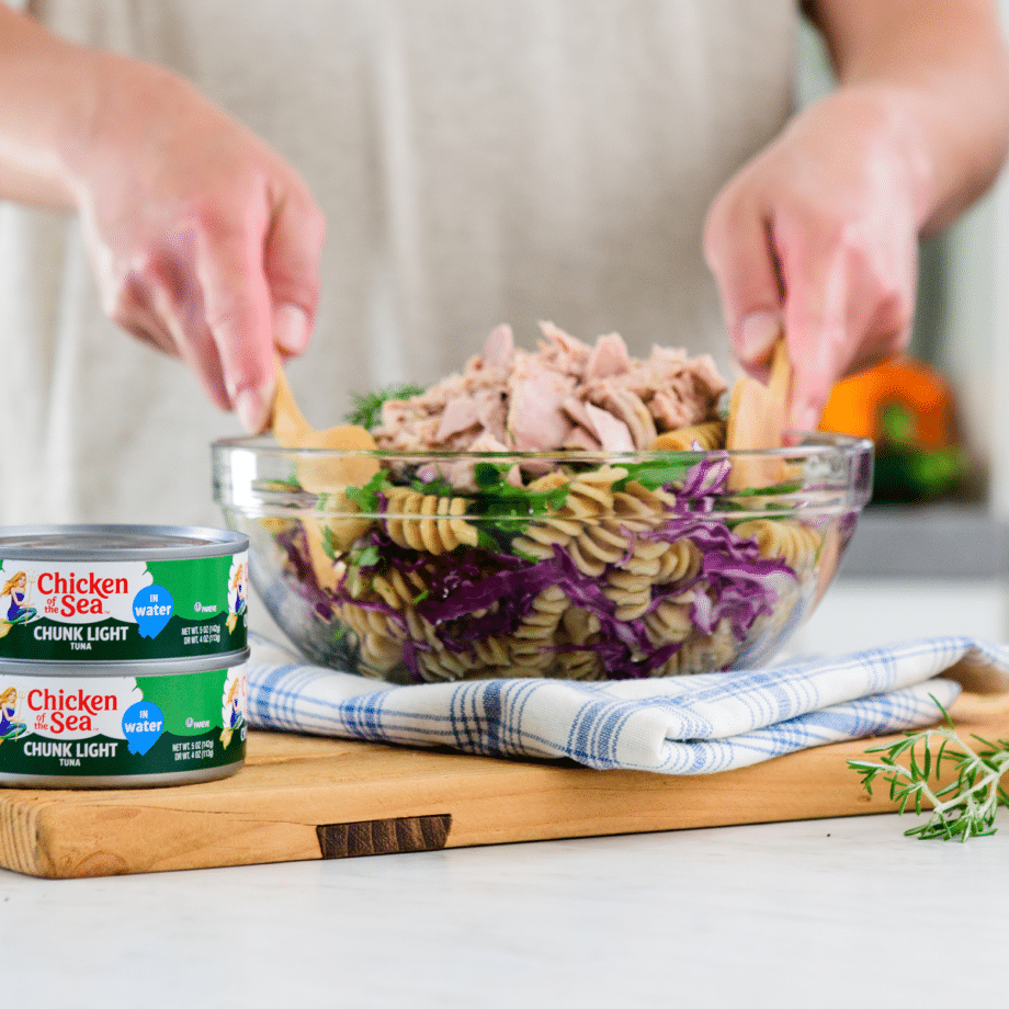 Canned Tuna Recipes The best canned tuna recipes. Make quick, protein-packed meals like tuna salad, melts, and pasta in under 20 minutes using simple pantry staples. Share Canned tuna is a versatile, nutrient-dense pantry staple that allows you to create protein-packed meals in minutes without the need for extensive meal prep. Whether you are looking for a light, low-carb lunch or a comforting, warm dinner, these recipes transform a simple tin of fish into a gourmet experience. Table of Contents What are the health benefits of canned tuna? How do I choose the right canned tuna for my recipe? How do I make the ultimate tuna salad? What is the best way to make a Mediterranean tuna salad? How do I make a classic tuna melt? How do I cook tuna pasta puttanesca? How do I make crispy tuna cakes? How should I store leftover canned tuna? What are the health benefits of canned tuna? Canned tuna serves as an exceptional source of lean protein and essential minerals, making it a cornerstone for heart-healthy and balanced diets. It is particularly valued for its convenience, providing high-quality seafood nutrition that is fully cooked and ready to eat straight from the can. Is canned tuna a good source of protein? According to the USDA, canned tuna is an efficient way to meet your daily protein requirements, offering approximately 20 to 25 grams of protein per 3-ounce serving depending on the variety. This makes it an ideal post-workout snack or a filling component for weight management diets. Does canned tuna provide omega-3 fatty acids? Canned tuna is a reliable source of EPA and DHA omega-3 fatty acids, which are critical for maintaining cardiovascular health and supporting brain function. The American Heart Association recommends consuming at least two servings of fatty fish per week to help reduce the risk of heart disease. Is canned tuna a sustainable seafood choice? Many premium options, including those from Chicken of the Sea®, are wild caught and sourced from fisheries that adhere to strict sustainability standards. These practices ensure that tuna populations remain stable and the marine ecosystem is protected for future generations. How do I choose the right canned tuna for my recipe? The best type of tuna for your dish depends on the texture you desire and the flavor profile of the other ingredients. Choosing between oil-packed and water-packed varieties can significantly impact the final taste and nutritional density of your meal. Feature Tuna in Water Tuna in Oil Flavor Clean and mild Rich and savory Texture Firm and lean Silky and tender Best For Mayo-based salads, low-carb snacks Pastas, grain bowls, and antipasto Caloric Content Lower in calories Higher in healthy fats What is the difference between solid white and light tuna? Solid white albacore tuna has a firm texture and a mild, almost poultry-like flavor, making it perfect for salads where you want distinct chunks of fish. Because of its firm texture, it is often featured in wholesome meals using albacore tuna that require a more substantial bite than chunkier varieties. Chunk light tuna consists of smaller pieces and has a more intense “fish” flavor, which holds up well in cooked dishes like casseroles or pasta sauces. How do I make the ultimate tuna salad? The ultimate tuna salad balances creamy mayonnaise with the bright acidity of lemon and the crunch of fresh vegetables. This classic preparation is a lunchtime staple that can be customized with various fresh herbs and spices to suit your palate. Prep Time 10 minutes Total Time 10 minutes Servings 2 servings What ingredients do I need for the ultimate tuna salad? 1 can (5 oz) Chicken of the Sea® Chunk White Albacore Tuna in Water, drained 2 tbsp mayonnaise 1 tsp Dijon mustard 2 tbsp finely diced celery 1 tbsp finely diced red onion 1 tsp fresh lemon juice Salt, pepper, and fresh dill to taste Step-by-step instructions Drain the tuna: Remove the tuna from the can and drain any excess liquid thoroughly to prevent a watery salad. Mix the base: In a medium bowl, combine the mayonnaise, Dijon mustard, and lemon juice. Combine ingredients: Add the drained tuna, celery, and red onion to the bowl. Fold and flake: Use a fork to gently flake the tuna and fold it into the dressing until evenly coated. Season: Stir in the fresh dill and season with salt and pepper to taste. Serve: Enjoy on toasted sourdough, in a wrap, or over a bed of mixed greens. Nutrition Facts Serving Size: 86g | Calories: 150 | Total Fat: 11g (14% DV) | Saturated Fat: 2g (9% DV) | Trans Fat: 0g |Cholesterol: 25mg (9% DV) | Sodium: 250mg (11% DV) | Total Carbohydrate: 2g (1% DV) | Dietary Fiber: 0g (1% DV) | Total Sugar: 1g, Includes 0g Added Sugar (0% DV) | Protein: 11g | Vitamin D: 0.7mcg (4% DV) | Calcium: 20mg (0% DV) | Iron: 1.1mg (6% DV) | Potassium: 130mg (2% DV) What is the best way to make a Mediterranean tuna salad? This no-mayo version of tuna salad relies on heart-healthy olive oil and acidic vinegars to create a vibrant, refreshing meal. It is an excellent option for meal prep as the flavors deepen after chilling in the refrigerator. This recipe offers a fresh alternative to the more traditional creamy tuna lunch that many households consider a weekly staple. Prep Time 15 minutes Total Time 15 minutes Servings 2 servings What are the ingredients for Mediterranean tuna salad? 1 can (5 oz) tuna, drained 1/2 cup chickpeas, rinsed 1/2 cup cherry tomatoes, halved 1/2 English cucumber, diced 2 tbsp Kalamata olives, sliced 2 tbsp crumbled feta cheese Dressing: 2 tbsp extra virgin olive oil, 1 tbsp lemon juice, and 1/2 tsp dried oregano Step-by-step instructions Prepare the veggies: Chop the tomatoes, cucumber, and olives. Whisk the dressing: In a large bowl, whisk together the olive oil, lemon juice, and oregano. Combine: Add the chickpeas, tomatoes, cucumbers, and olives to the dressing and toss to coat. Add the protein: Gently fold in the drained tuna, keeping the chunks large and intact. Finish: Top