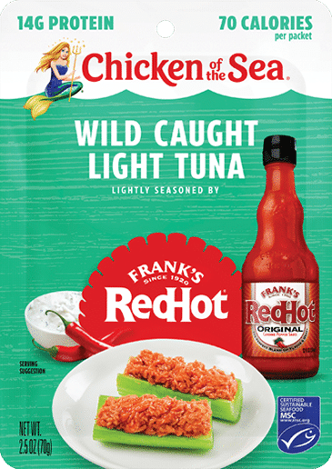 Frank’s RedHot® meets our savory, wild caught tuna in this boldly infused packet. Perfect for daring lunches, adventurous snacks or tearing straight into the packet when that spicy craving calls.