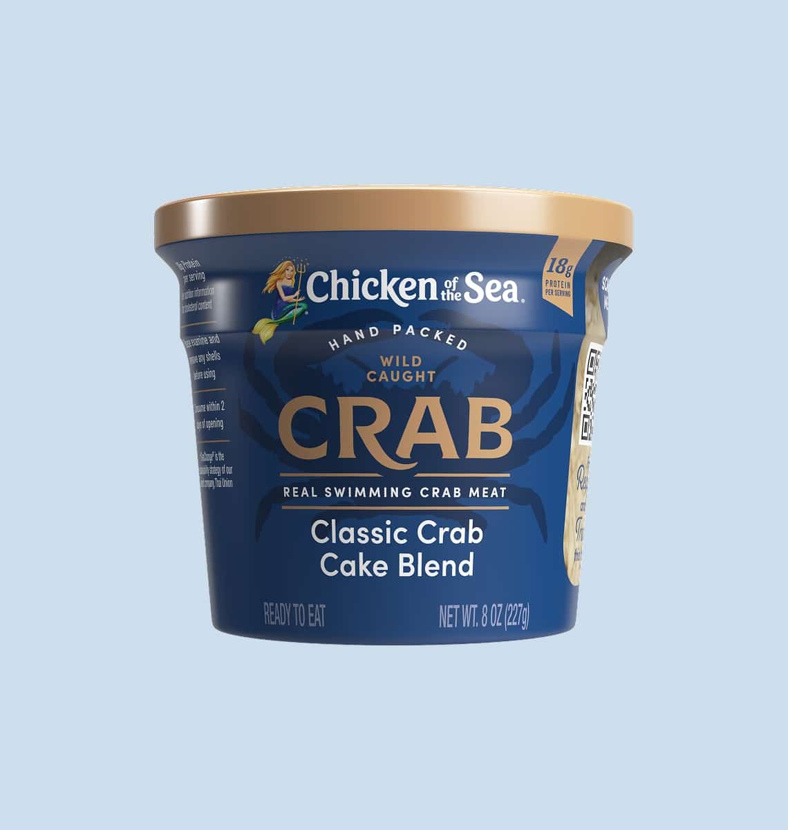 Blue Swimming Crab – Classic Crab Cake Blend Make impressive appetizers and entrees with our hand-selected Jumbo Lump Crab. WHERE TO BUY BUY NOW Available in 8 oz. cup Nutrition Facts Nutrition facts are based on a 16 oz. cup. Serving Size 3 oz. (85g) Servings per container 2.5 Amount per serving % Daily Value calories 80 - total fat 0.5g 1% saturated fat 0g 0% trans fat 0g - cholesterol 100mg 33% sodium 270mg 12% total carbohydrates 0g 0% fiber 0g 0% total sugars 0g - added sugars 0g 0% protein 18g - vitamin d 0mcg 0% calcium 50mg 4% iron 0.5mg 2% potassium 270mg 6% Ingredients Pasteurized Crab Meat (Portunus pelagicus), Sodium Acid Pyrophosphate (to promote color retention)