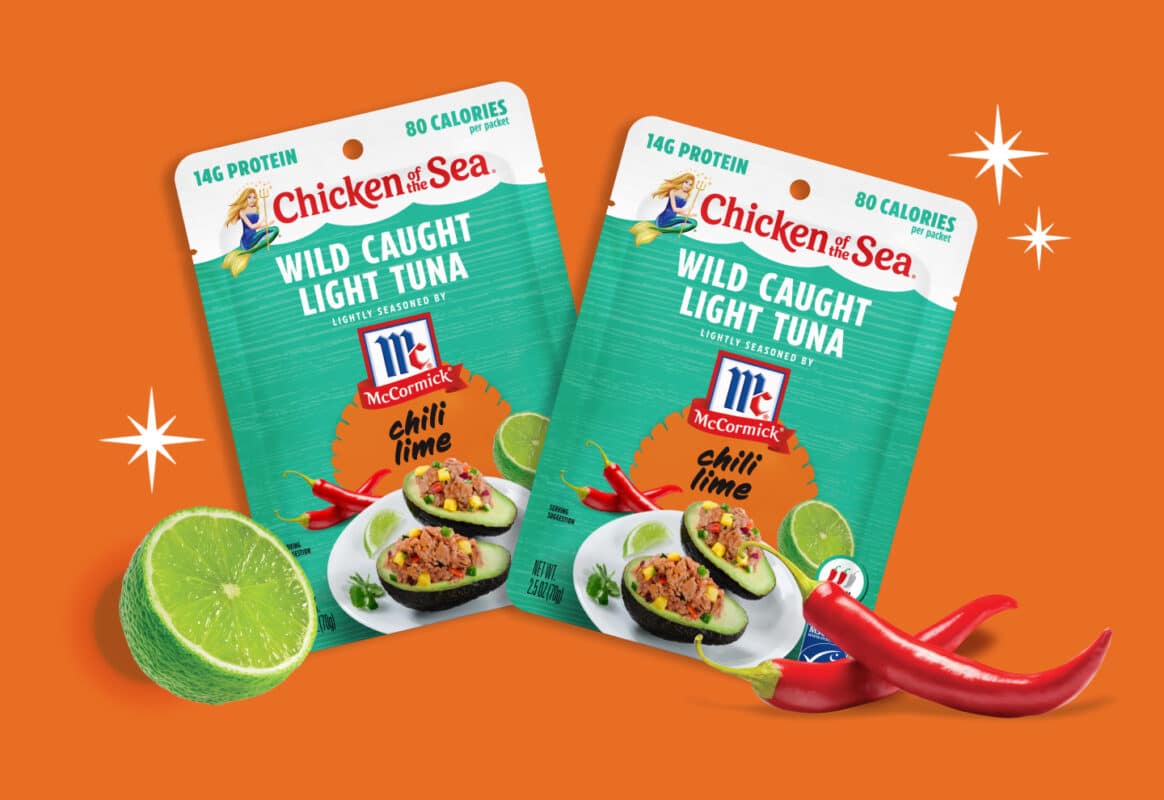 Chili Lime Tuna Packet We’ve teamed up with the flavor experts at McCormick® to create this beautifully seasoned wild caught tuna packet. The joyful zing of lime and mild chili spice add a fresh burst of zip to your tuna tacos, tostadas, or scooped right onto an avocado. WHERE TO BUY BUY NOW Available in 2.5 oz. Nutrition Facts Serving Size 1 packet (70g) Servings per container 1 Amount per serving % Daily Value calories 80 - total fat 0.5g 1% saturated fat 0g 0% trans fat 0g - polyunsaturated fat 0g monounsaturated fat 0g cholesterol 25mg 8% sodium 340mg 15% total carbohydrates 4g 2% fiber <1g 3% total sugars 3g - added sugars 3g 5% protein 14g 25% vitamin d 1.2mcg 6% calcium 10mg 0% iron 0.7mg 4% potassium 210mg 4% niacin 11.7mg 70% vitamin b6 0.28mg 15% vitamin b12 1.79mcg 70% selenium 49mcg 90% Ingredients Light Tuna, Water, Sugar, Chili Powder, Contains 2% or Less of the Following: Lime Juice, Lemon Juice, Onion Powder, Garlic Powder, Black Pepper, Soy Sauce, Salt, Natural Flavor, Paprika (Color), Ascorbic Acid, Citric Acid, Xanthan Gum, Maltodextrin. Contains: Fish, Soy Wheat